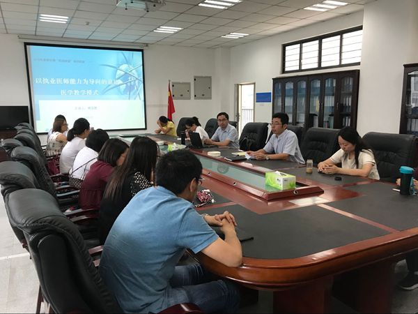 为进一步加强师德师能建设,弘扬“热爱教育、热爱教学、热爱学生、热爱学术”的核心价值观念,切实提高我院青年教师教学能力和学生执业医师考试通过率,促进学院“本科教学工作审核评估”建设工作,365bet体育注册于6月14日下午开展了题为“以执业医师能力为导向的基础医学教学模式”的教研活动,活动由365bet体育注册杨平副院长主持,生理学教研室林友胜副教授主讲。