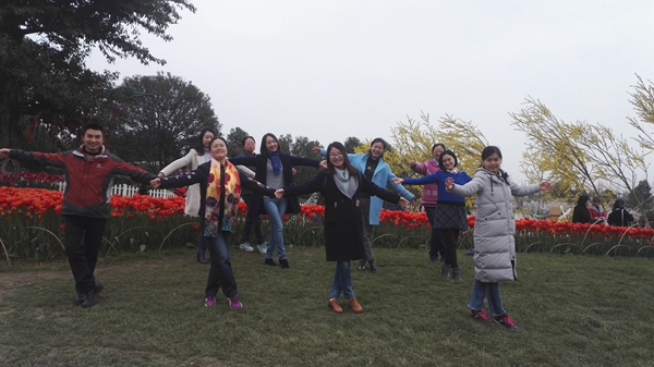 漫花庄园以乐享花生活为主题,是集赏花、休闲、特色美食、儿童游乐园、一站式花卉购物于一体的专业都市花海。从荷兰引进的各色优质郁金香和牡丹、虞美人等花卉同时盛开,将漫花庄园铺成一片花海。教职工体验到漫步花丛中的浪漫感觉,享受着难忘的阳春时光。