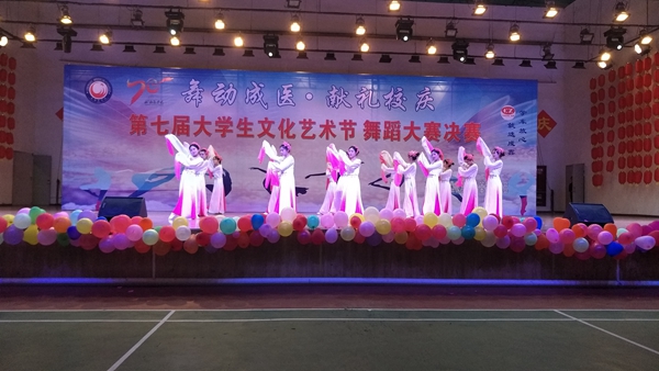 3月30日晚,由共青团成都医学院委员会主办,365bet体育注册团委、学生会承办的第七届大学生文化艺术节之“舞动成医 献礼校庆”舞蹈大赛总决赛在蜂巢隆重举行。党委宣传部伍兴阶部长、学生处刘萍处长、团委彭成静书记、365bet体育注册王绪伦副书记、学校内派教师新疆医科大学营养学教授韩加等出席并观看演出。比赛由人文信息管理学院体育教研室胥燕等5名老师担当评委。
