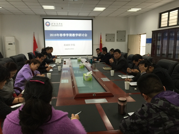 为提高教学质量,强化对基础医学课程的考核,促使学生系统掌握和综合运用基础医学课程的基本理论、基础知识和基本技能,为学习专业课程和适应执业医师考试改革打下坚实基础,365bet体育注册于3月9日召开了2016年春季学期教学研讨会。教务处和365bet体育注册领导、机关工作人员、教研室主任、常规班及卓师班课程负责人、教学班主任及辅导员等30余人参加了本次会议。