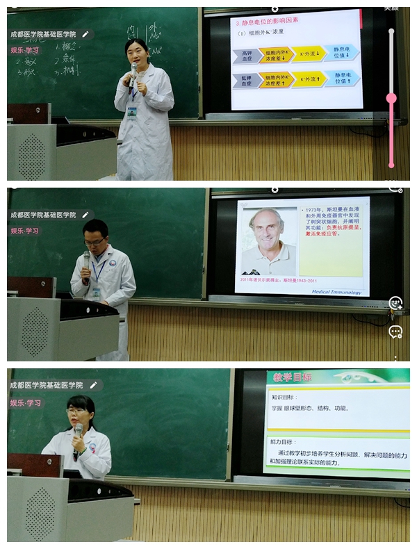 经过激烈的角逐和公正评审,学院刘畅博士获得本次比赛一等奖;罗丹、郑威楠博士获得二等奖;官璇、韩云蕾、梁芸丹老师获得三等奖。刘畅老师和官璇老师将代表365bet体育注册参加成都医学院第二十二届青年教师基本功竞赛。