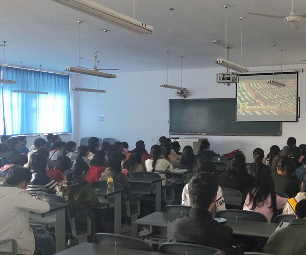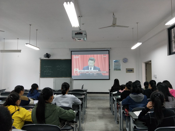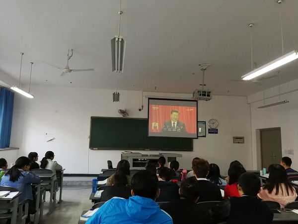 10月18日上午9:00,365bet体育注册组织无课师生收看中国共产党第十九次全国代表大会开幕会实况直播,聆听、学习习近平总书记代表十八届中央委员会向大会所作的报告。