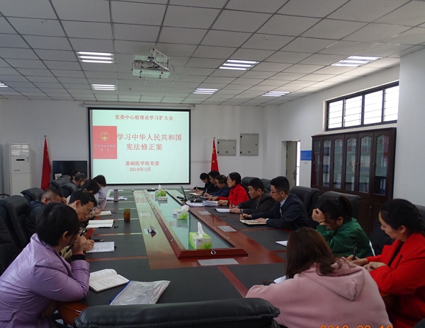 会议还开展了中华人民共和国宪法修正案的专题学习。江先文指出,全院广大党员干部和师生要从政治和全局高度深刻认识宪法修改的重大意义,提高政治站位,树牢“四个意识”,坚定“四个自信”,自觉做到“四个服从”,要原原本本、认认真真学习宪法修正案,深刻理解宪法修正案的内涵,自觉恪守宪法原则、弘扬宪法精神。