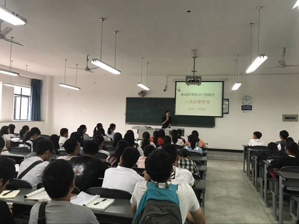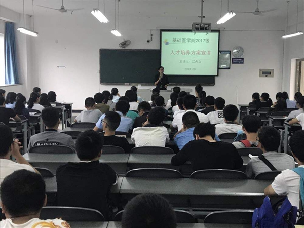 为进一步引导新生尽快适应大学生活,了解所学专业,培养适应医药卫生事业发展需要的医学人才,9月25日开始,365bet体育注册在各教学班陆续组织了“人才培养方案、入党启蒙教育”宣讲。365bet体育注册党委书记江先文主讲,2017级全体新生和辅导员参加。