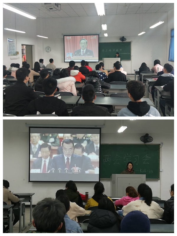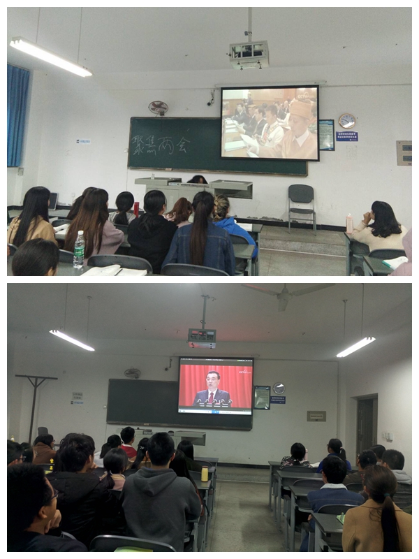 十三届全国人大一次会议开幕式当天,学院组织无课班级在教室统一观看了开幕式。同学们认真观看开幕式盛况,听取了国务院总理李克强关于政府工作的报告。李克强总理在报告中回顾我国过去一年的成就与不足之处,提出2018年经济社会发展的主要预期目标以及重点工作。有课的班级利用空余时间观看了重播。