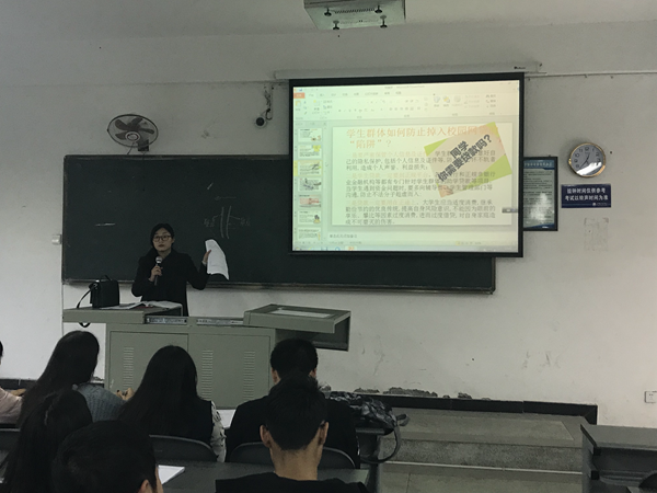 为了提高大学生群体对不良校园贷危害性的认识,营造良好的校园舆论氛围,根据学校安排,11月开始,365bet体育注册结合校园贷风险防范宣传资料,以年级、班级组织开展“校园贷”宣传教育主题班会。