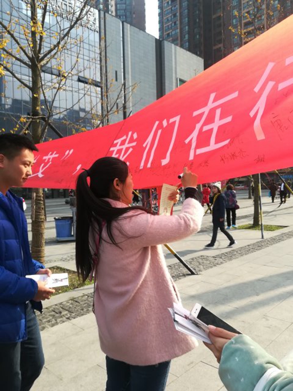 此次活动分两次开展,11月26日在新都区懿润百货广场,12月3日在永辉超市海伦国际广场。365bet体育注册学生会组织开展了发放宣传手册、有奖知识竞答、“艾”我你就抱抱我签名活动等多项活动。同时,对艾滋病的预防、传播途径、检测方法等进行海报展示,起到普及医学知识的作用。活动现场气氛热烈,活动参与人员获益匪浅。