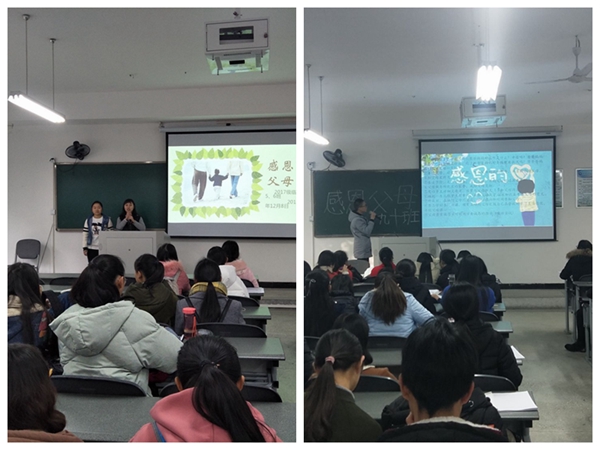 为了继承和发扬中华民族传统美德,提高学生思想道德素质,引导学生自觉孝敬父母、理解父母、感激父母,12月初,365bet体育注册2017级各班级陆续开展“感恩父母 拥抱亲情”的主题班会。