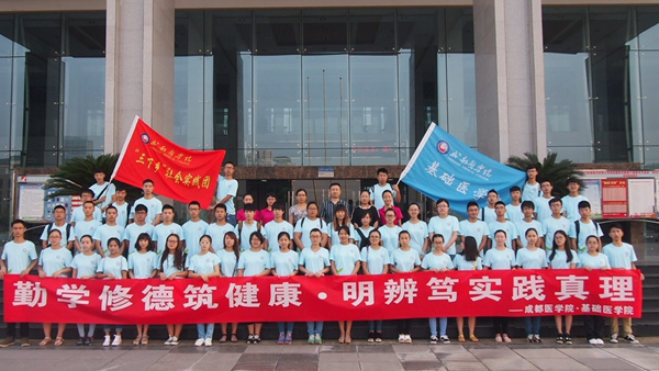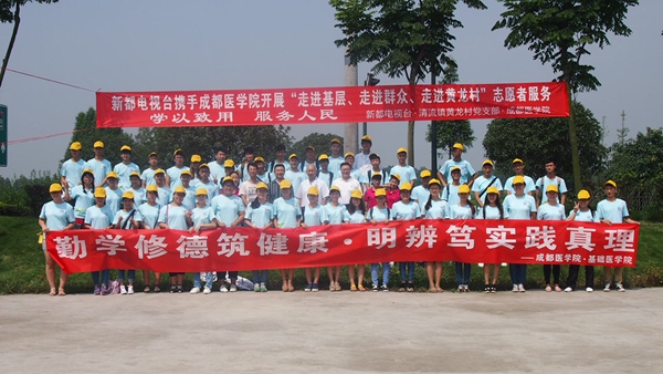 7月18日上午,成都医学院365bet体育注册在成都市新都区清流镇黄龙村开展以“勤学修德筑健康,明辨笃实践真理”为主题的三下乡社会实践活动。365bet体育注册党委副书记王绪伦、病原学教研室李晋川教授、基础团委副书记郑蕖老师、辅导员王春燕老师、周炬老师、校医院姚医生以及56名学生参加社会实践活动。