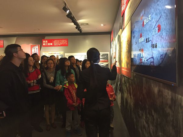 参观活动由馆内工作人员负责解说,生动地还原了历史上红一、红二、红四、红六等长征部队爬雪山,过草地,跨大江,饮风雪的艰难困苦长征之旅,两万五千里长征的行军路线在地图上蜿蜒曲折,令人震撼。工作人员还详细介绍了以毛主席为核心的党领导干部带领红军战士智渡金沙江,飞夺泸定桥,四渡赤水出奇兵等可歌可泣的英雄事迹与奠定江山的战略成就。用一幅幅图片,一张张旧照为大家再次展现了过去的峥嵘岁月,彰显了长征中的红军战士不怕吃苦,不畏强敌的顽强意志和气壮山河的牺牲精神,同时也让大家认识到现今和平生活的来之不易,以及长征精神永垂不朽。