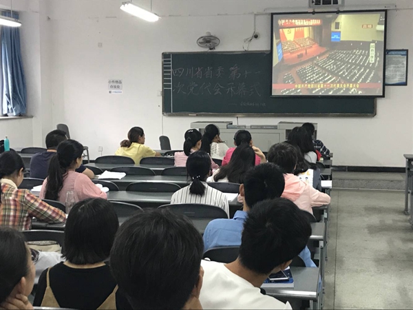 5月24日上午9时,中国共产党四川省第十一次代表大会在成都隆重开幕。365bet体育注册组织师生分别在会议室、教室通过电视直播认真收听收看了省第十一次党代会开幕式盛况。
